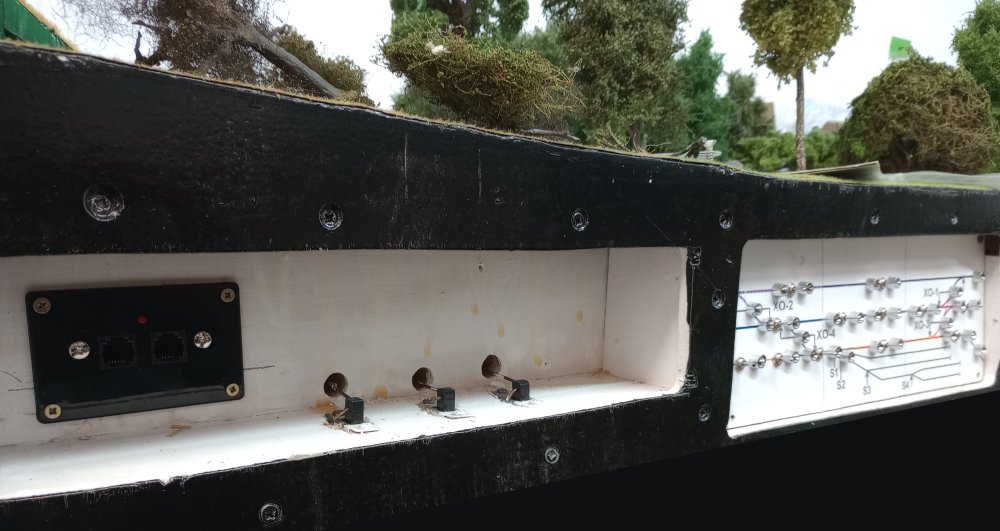 A view of the control panel and slide switches for point operation. The aftermath of a storm